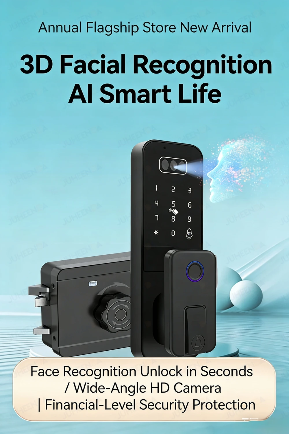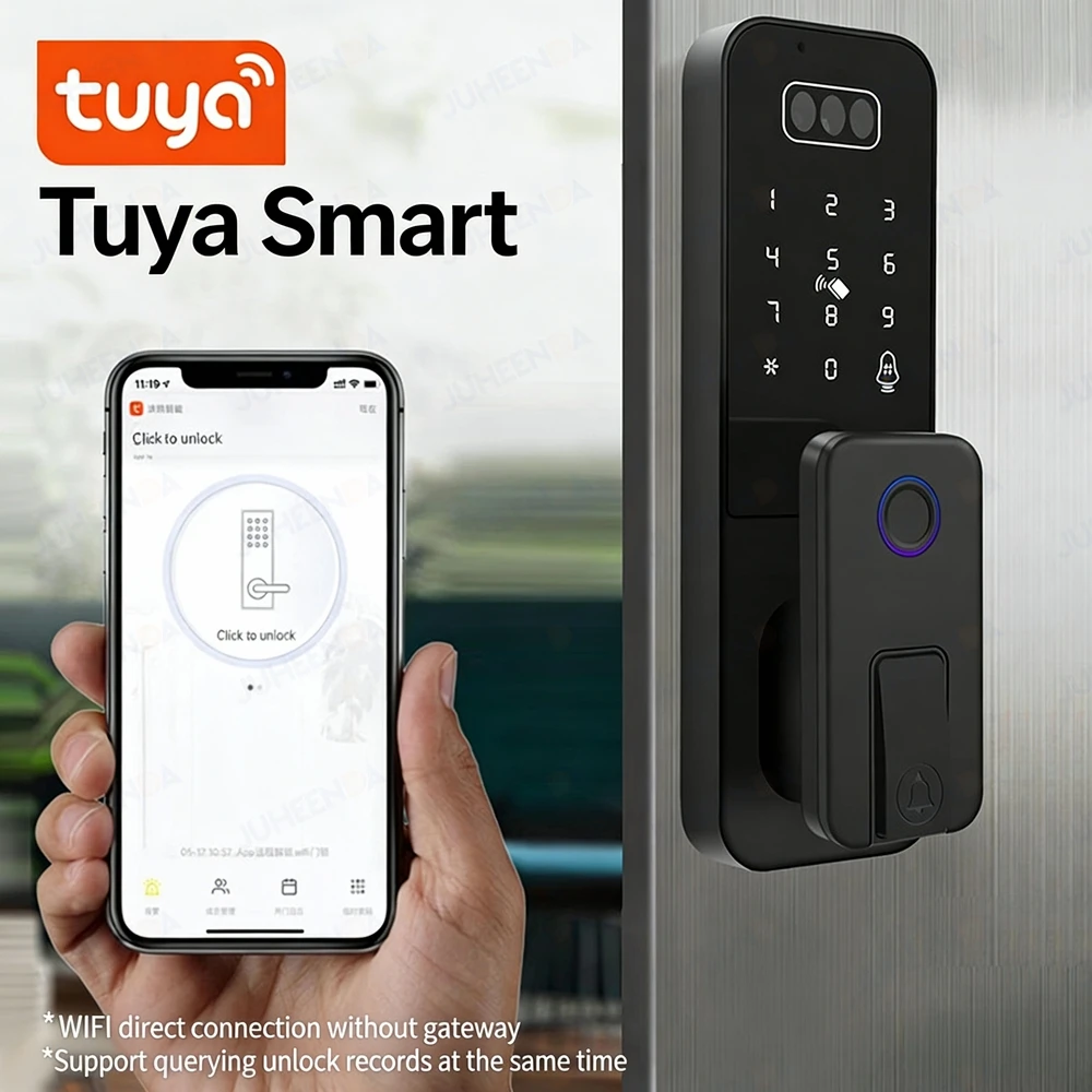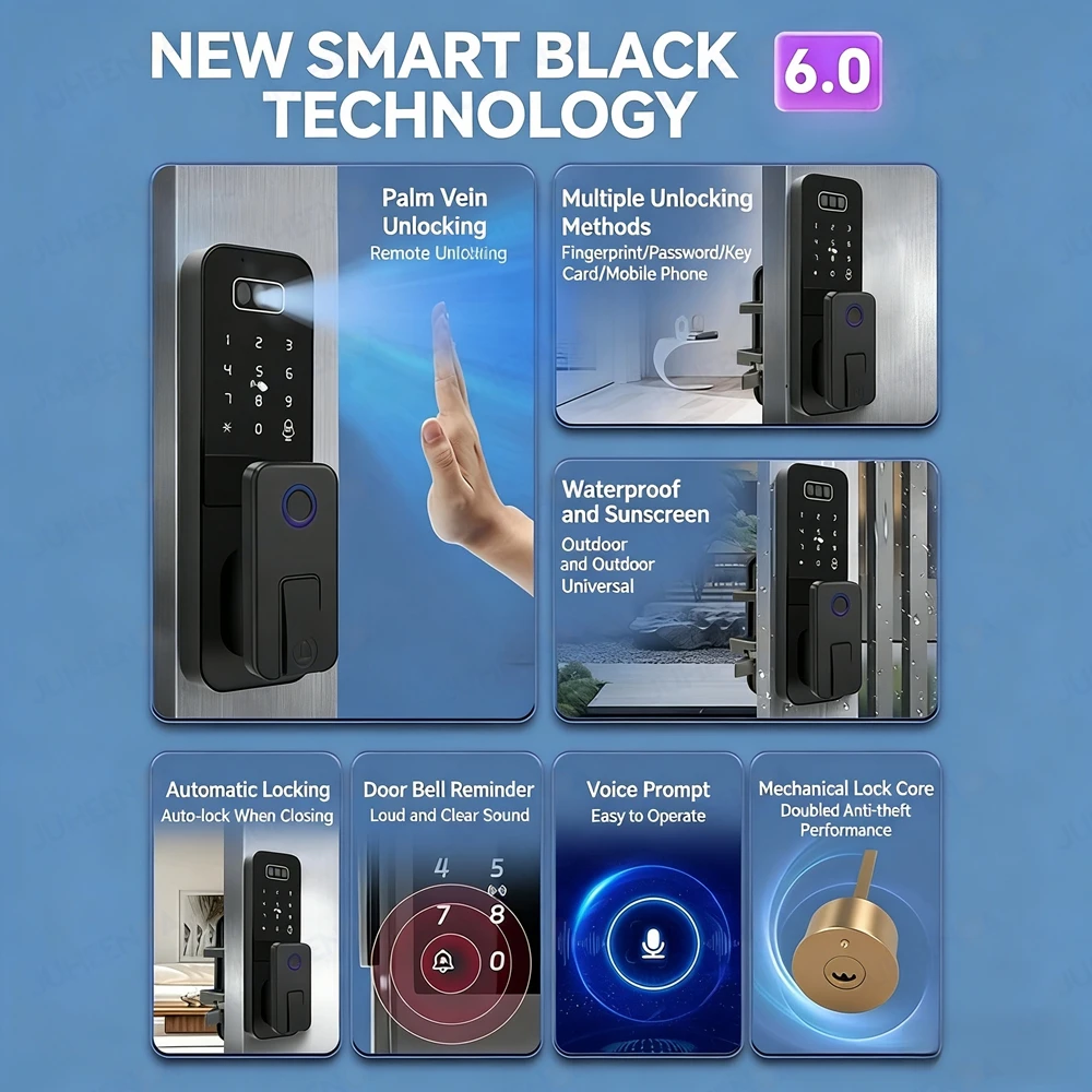 The smart door lock supports Face recognition/ fingerprint/ Palm Viem/ password/ IC card/ mechanical key/ App multiple unlocking methods.