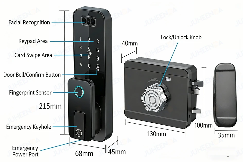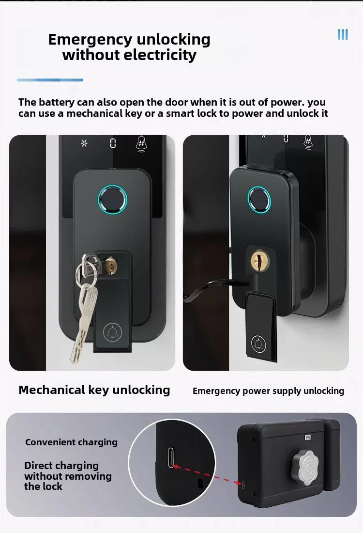 This smart lock can be installed on both the left and right doors regardless of direction. The indoor keyboard can be
